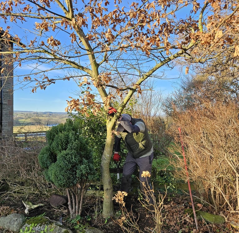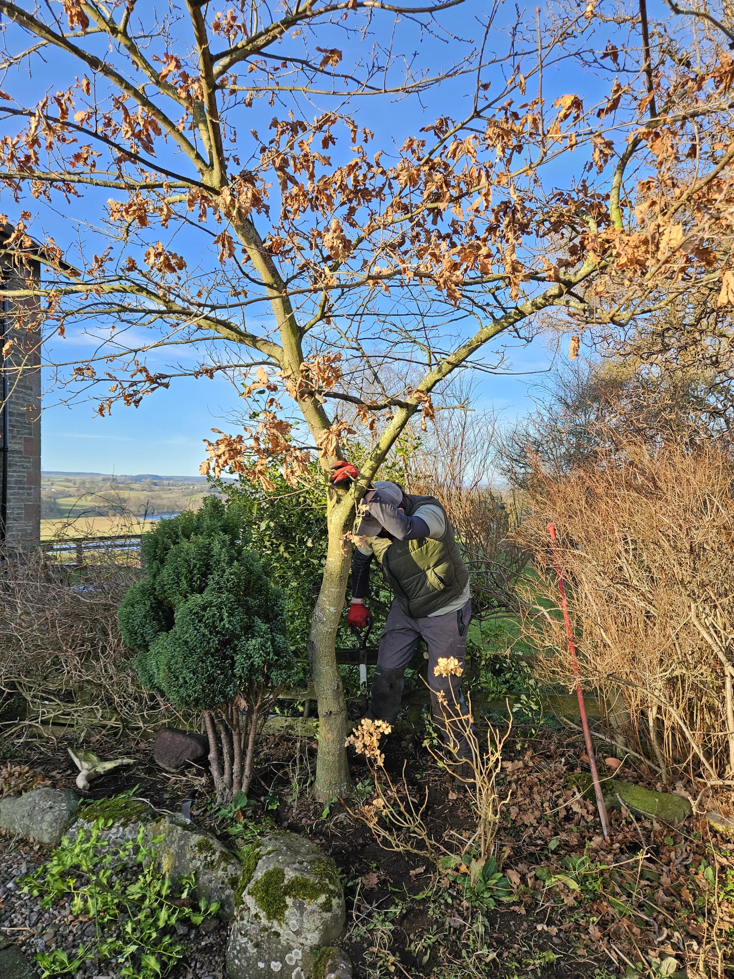 The first winter the aim is to cut a channel around the tree, at a distance that severs just the fine roots. Then the space is back filled with fine soil. The hope is that the following summer, roots will reestablish in the loose soil. The following winter the tree is fully dug out severing the structural roots, but without have to damage the new roots. The tree is then replanted as quickly as possible, without the rootball drying out.